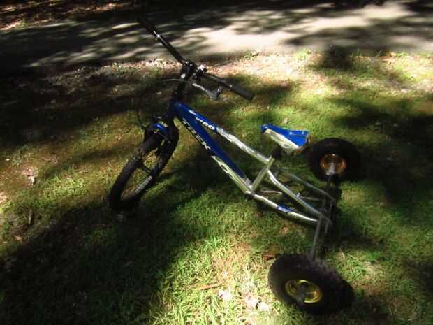 un triciclo ghettoblaster (sólo lo he nombrado) es un triciclo de adulto con los altavoces más fuertes se puede llegar a él. Esta cosa es un recinto completamente fiberglassed con 2 woofers de 15", 5 altavoces y 1 rango medio. Su potencia por un prof