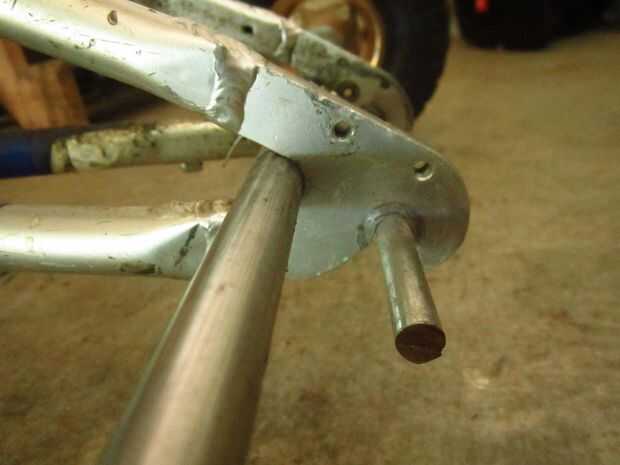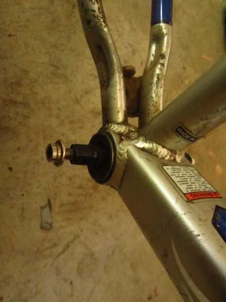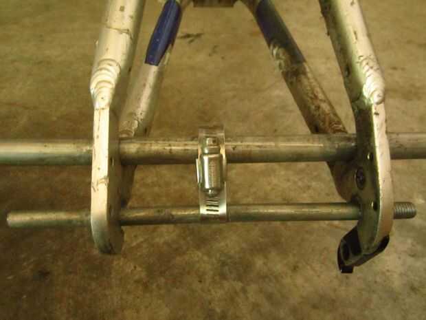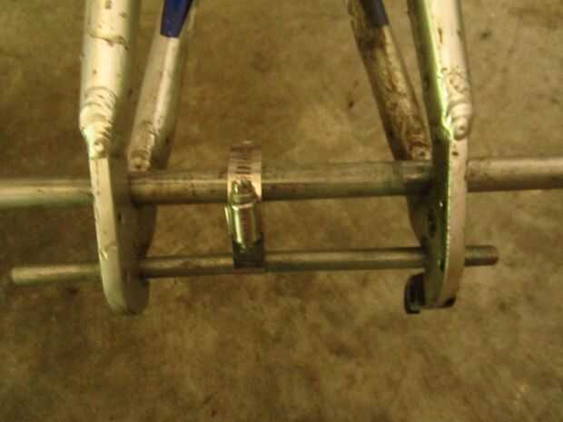 Entonces quítate el desviador trasero. Conseguir una varilla de acero de 5\8 y ponerla en la horquilla trasera, como en la foto.