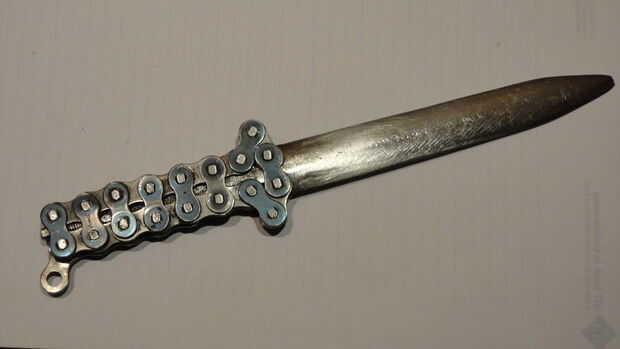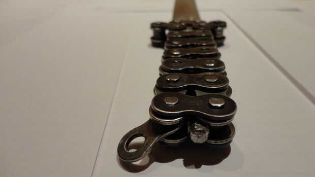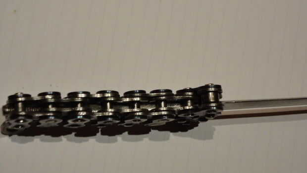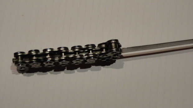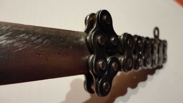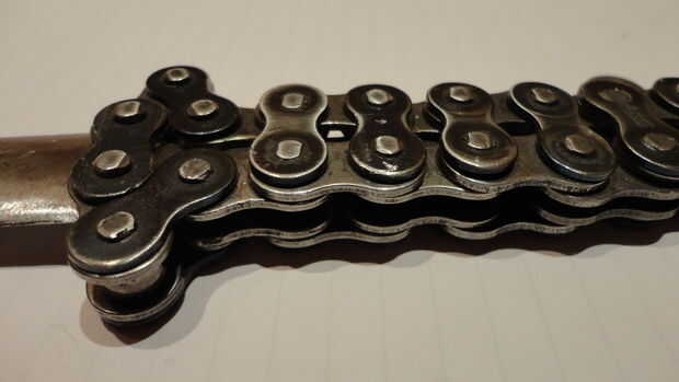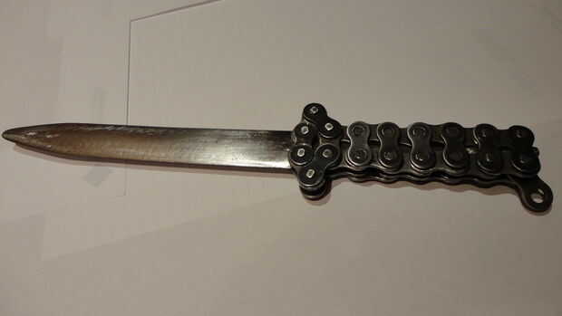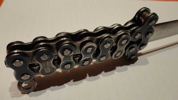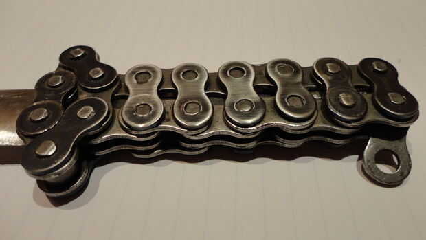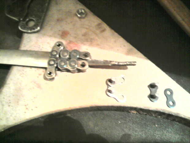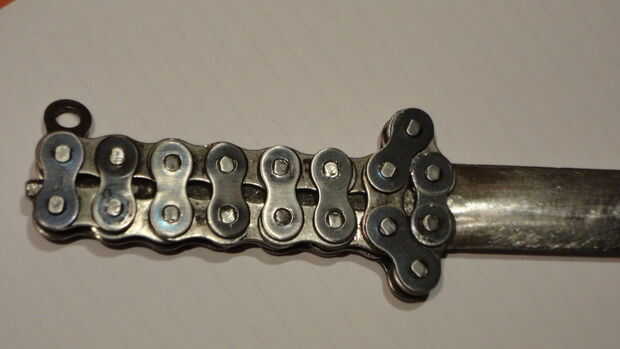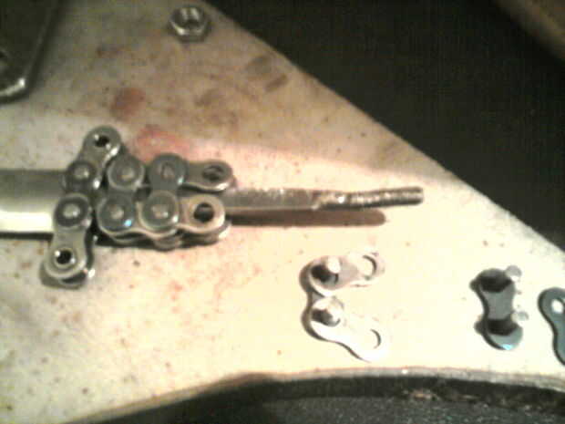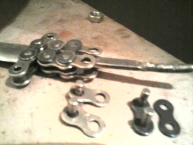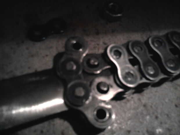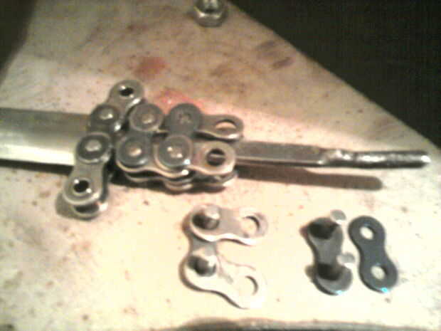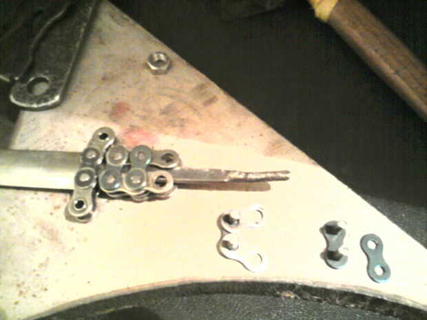 chain pocket knifeSacó de un elementos de la cadena oxidadaEncajan sin ruedas, con moldeadoPor último soldadoAún así, pulido, pulido, cromo debe ser de alguna manera¿maneras más fáciles de? ¿spray y ácido?