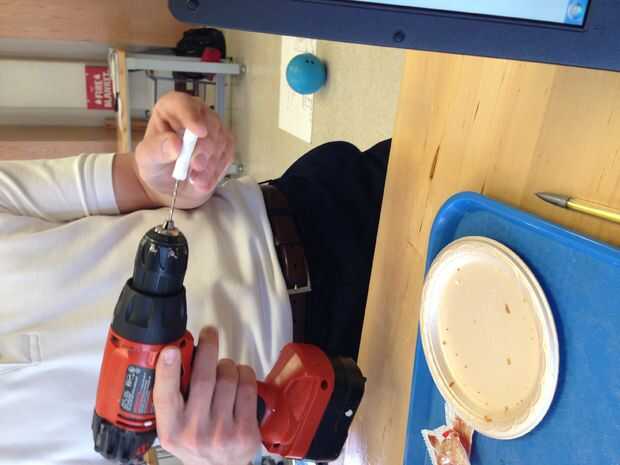 Tomar una broca octavo de pulgada y con un powerdrill, perfore una boquilla de mitad de la longitud de la carcasa.