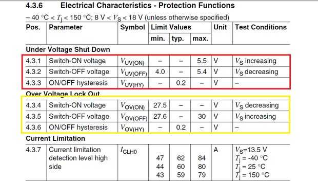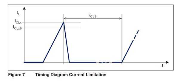 3) limitación de corriente: la corriente en el puente se mide en ambos interruptores, alta y baja de lado, si se desactiva la corriente llegando a la corriente límite (Iclx) el interruptor y se activa el otro interruptor para un cierto time(Tcls).