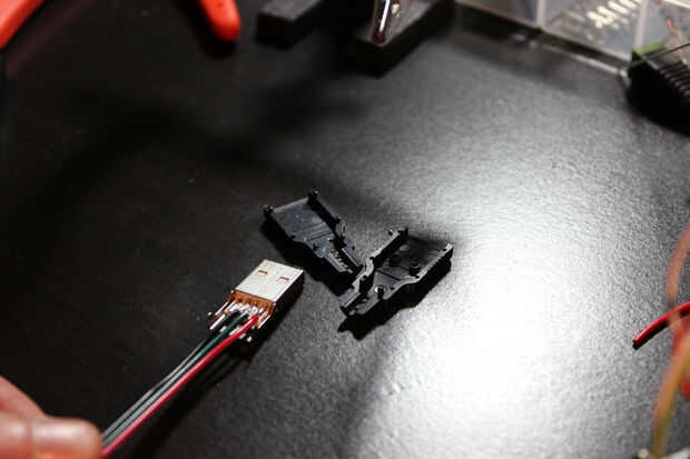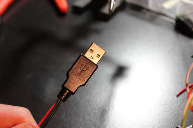 Yo quería tener el cable del sensor fácilmente extraíble. Para un conector rápido que decidí usar un conector USB. Están ampliamente disponibles y son generalmente muy baratos. Conectores USB se hace también de 5volts y el voltaje del sensor utiliza.