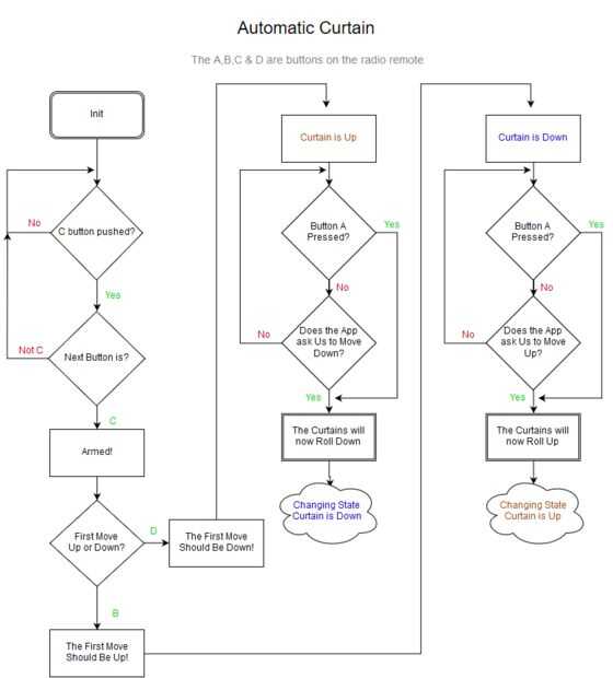 Estas dos imágenes le dará una idea de cómo yo quería trabajar. Lo que no te dicen es que el control manual para arriba y abajo puede ser utilizado en cualquier momento (incluso en la fase inicial). Y el control externo envía "solicitudes", no siempre puede ver la cortina, o usted podría han hecho para que el teléfono envía solicitudes automáticamente.