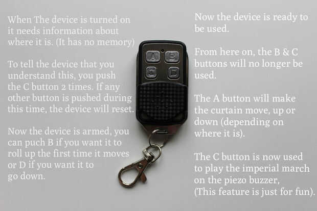 La cortina funciona con sólo un mando a distancia por lo que si no necesita la función de "control de teléfono" que podría saltar, el código que proporciono funcionará.