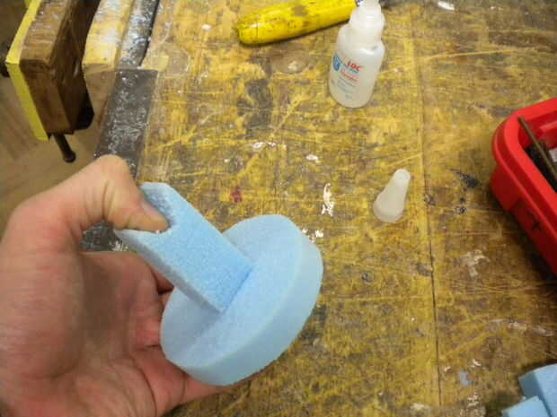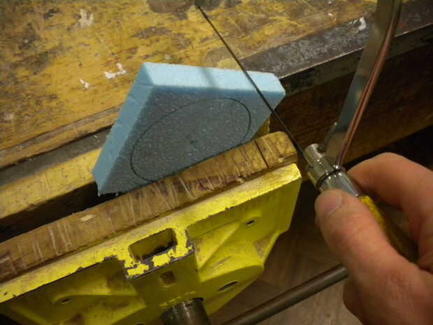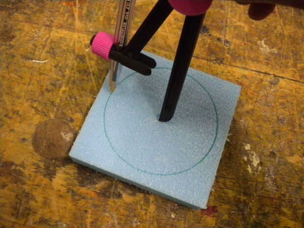 • Corte un círculo de Ø70mm en la espuma de poliestireno con un divisor o brújula