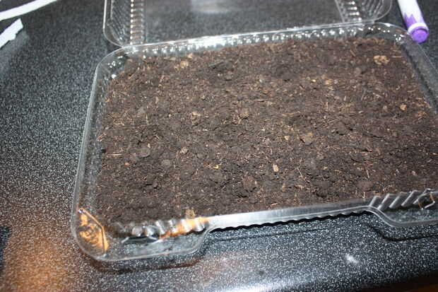 Llene el recipiente con tierra para que casi llegue a la parte superior de la misma. Esparza el polvo uniformemente en el recipiente. Ahora puede bajar cráteres en la tierra usando su dedo o un marcador. Luego poner sus semillas en los cráteres y cubrirlas con tierra.