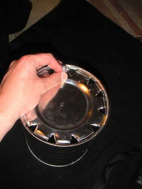 Bien, ahora que algún peligro. Tomar un clavo o clavo analógico y agujeros sobre a medio camino entre los puntos interiores de los doce agujeros ya tienes (segunda foto). Perforar en el centro. Ahora, volver atrás en el exterior y ampliar cada agujero "clavo" con las pinzas, hasta que una mandíbula de las pinzas puede caber la mayoría de la manera en el agujero, como se muestra en la tercera foto. Trabajar ambas quijadas de los alicates en el orificio central, lo que es un poco más grande que los otros.