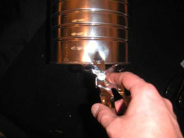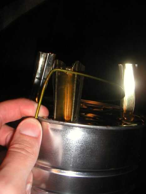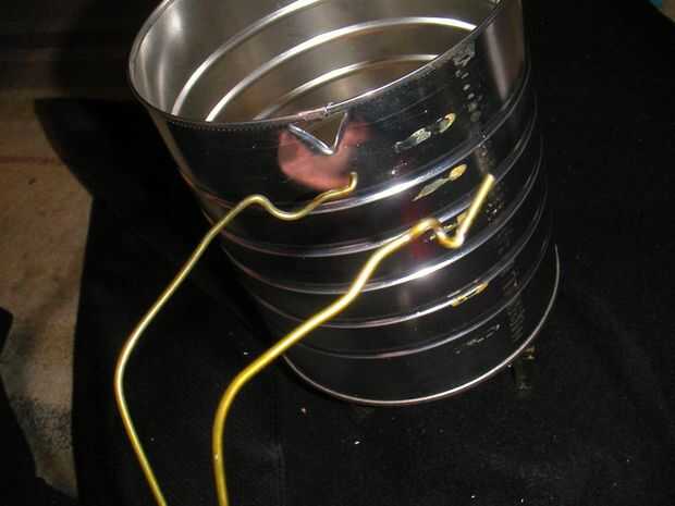 El resto de la suspensión de la forma como se muestra en la misma foto, con un ángulo que forma la parte superior del mango y una curva de z para coger el borde de la lata.