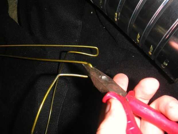 La percha para resolver estos problemas. Utilizando pinzas, desplegar la percha y cortó el gancho por encima de los giros, para que quede simétrico.