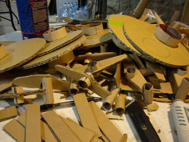 Materiales1. cartón cajas, una para el cuerpo del avión, alas, etc. (al menos dos, cualquier tamaño, dependiendo de cuánto de un avión le gustaría hacer. Más de dos cajas se recomienda para que tenga el cartón extra para reforzar las partes débiles d