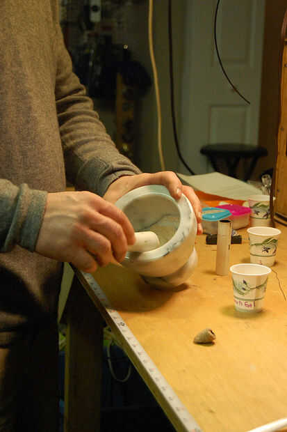 Ahora tome su 2,5 "largo tubo de pvc y colóquela de pie sobre el yunque y verter 1 cucharadita de tierra gatos en él.