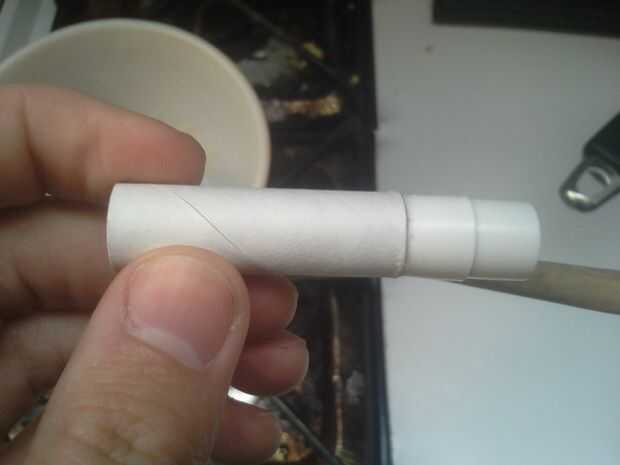 Ahora necesita embalar el combustible en el tubo. Usé un palito, sí es tecnología pero funciona así qué diablos.