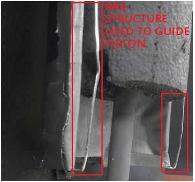 Otra cuestión con recorrido de pistón es gravedad. Con mi proyecto, el pistón mantuvo cayendo hacia adelante, así que tuve que crear un soporte que mímico lo que habría sido la otra mitad de la pared del cilindro. Utilizando clips grandes (3), hice un carril para el pistón viajar. Les enderece hacia fuera y dos de ellos formar figuras en forma de grapa. Coloque uno en cada borde del cilindro, luego conducto de cinta a la pared del cilindro. Para el último clip, hacer lo mismo que hizo al crear el pasador del pistón, salvo la lanza a través de la parte superior del pistón. Esperemos que el clip es lo suficientemente larga que permite que enrollar los extremos libremente alrededor de los dos rieles que acaba de hacer.