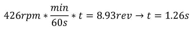 Por último, ahora que nosotros hemos verificado que nuestra relación de transmisión cumple con nuestro requisito, podemos calcular cuánto tiempo debe tomar para que el motor levantar el elevador.