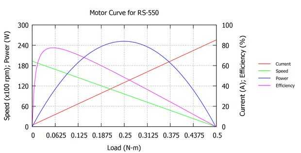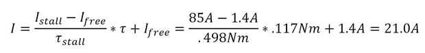 Ahora, podemos usar la ecuación (1) de "Características del Motor" para calcular la corriente que esperaríamos que el RS-550 para dibujar en esta carga: