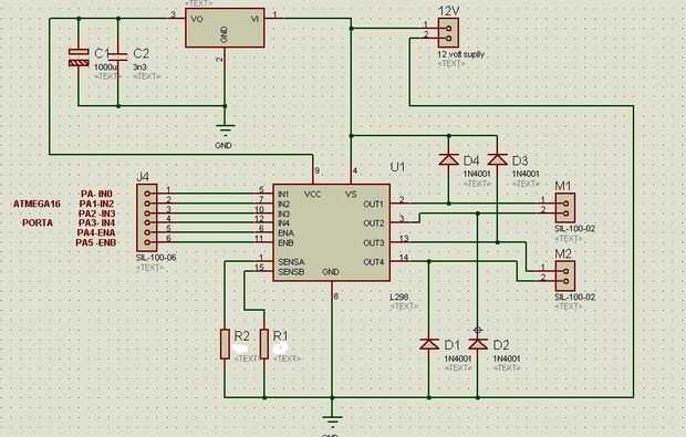 Si pasa la prueba con éxito puede ahora conectarse L298 ATmega16 circuito como abajo: