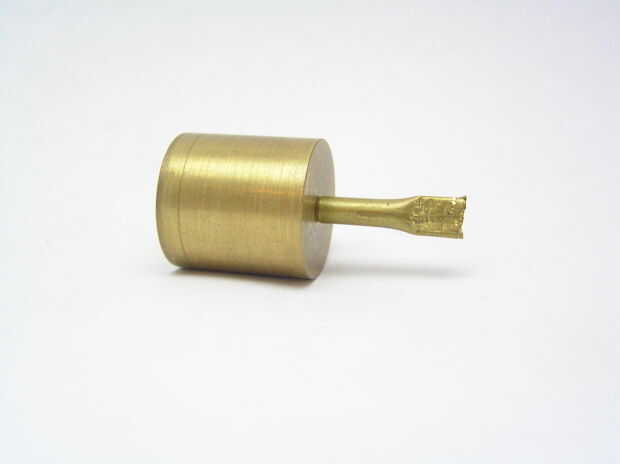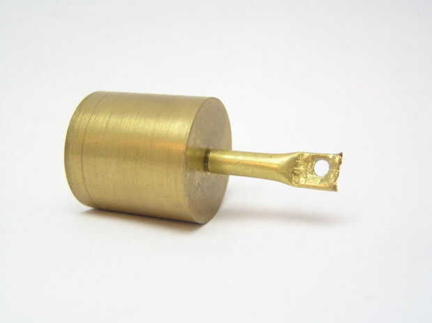 El pistón es un cilindro sólido de 20 mm x 20 m con un 1/8" agujero aburrido en uno de los extremos. Una corta sección de la varilla de acero fue pegada en el agujero, y una sección de tubo de cobre pegado sobre eso. El extremo del tubo fue aplanado y perforado a 2.5mm para aceptar una biela hecha de alambre de la percha. En términos de motor, esto es el rodamiento del extremo pequeño.