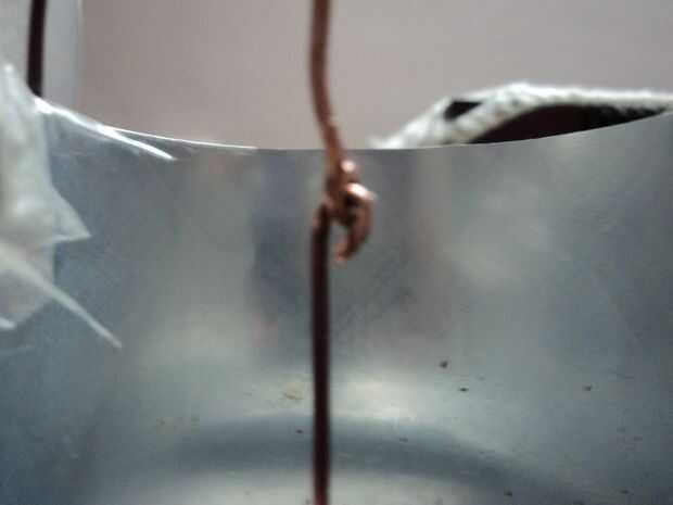 el émbolo de la lámina de aluminio y gancho y conecte el alambre de cobre que