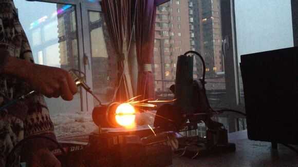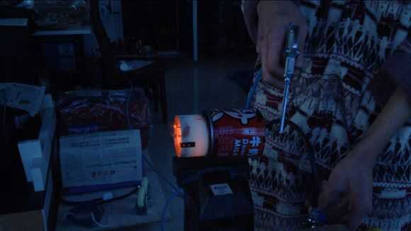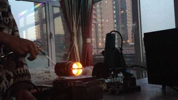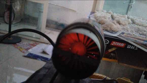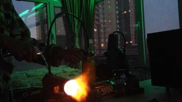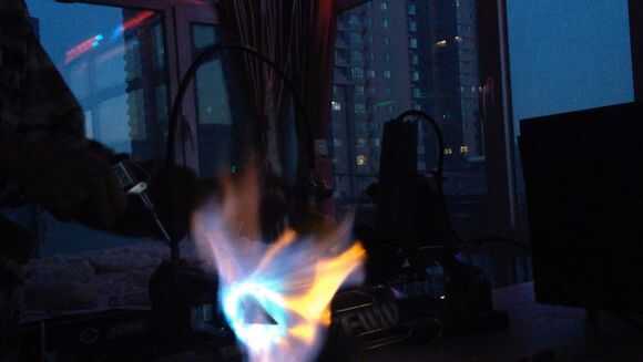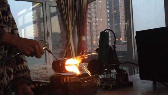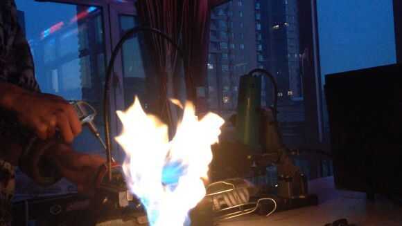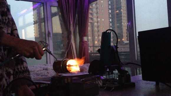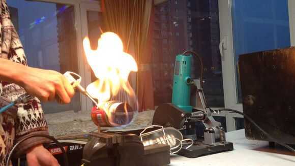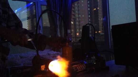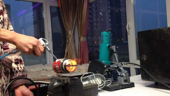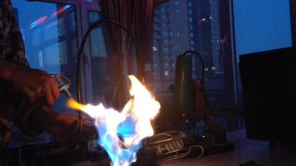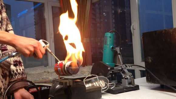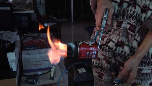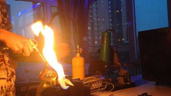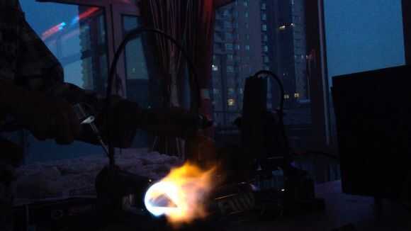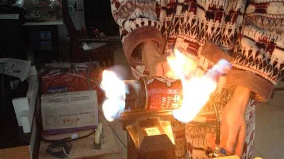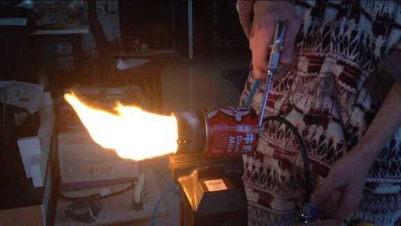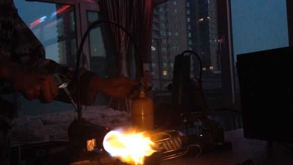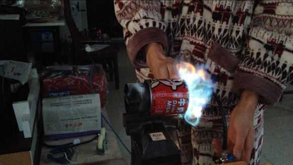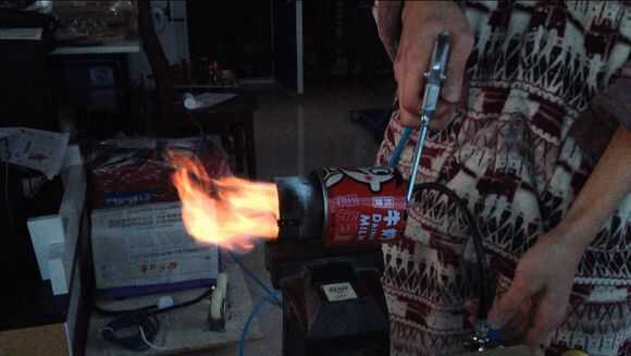Luego, por butano en tubo de cobre thethin, entonces use el encendedor para encender el fuego.