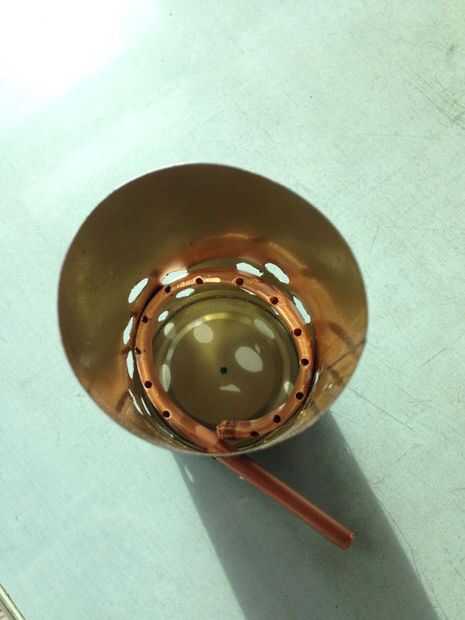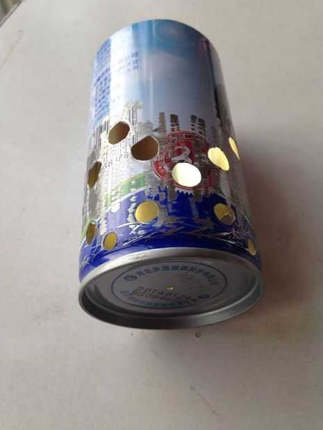 En primer lugar, debe cavar algunos hoyos en el perfil de la lata como la primera foto, y debe asegurar que el círculo de tubo de cobre delgado puede poner en la lata como la foto de adelante hacia atrás.