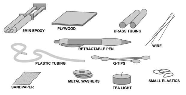 Mayoría de los materiales y herramientas para este proyecto que probablemente ya tendrá alrededor de la casa. Lo único que tuve que comprar fue el tubo de latón, cortador de tubo y un alambre.