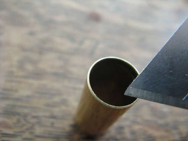 Cortar el cilindro y el pistón de dos piezas de tubo de latón. No tienen que ser exactamente el mismo diámetro como usé pero el debe encajar muy bien dentro de la y todavía pueda deslizarse libremente. Tu tienda de hobby local debe tener el tamaño correcto de tubo de latón.