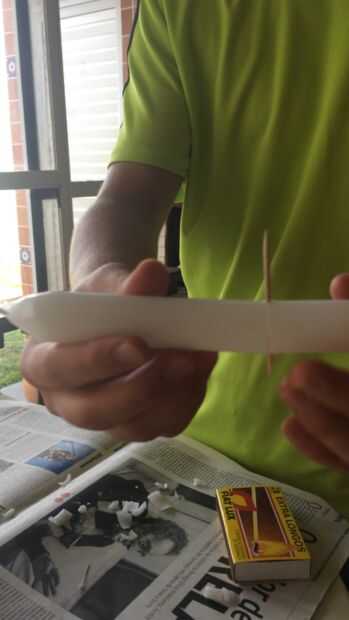 Nota: É importante o palito esteja bem justo no furo.