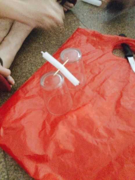 Paso 7: Posicione o palito com un vela entre os dois copos