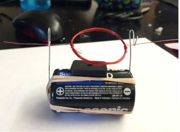 Para crear este motor eléctrico simple, necesitarás:D-pila (1)Clips de papel grandes (2)Banda de goma (1)Imán (1)Alambre de Magneto calibre 26 (brazos una longitud)Papel de lijaCortadores de alambrePaso 1: Enrollar alambre en bobina Tomar el alambre