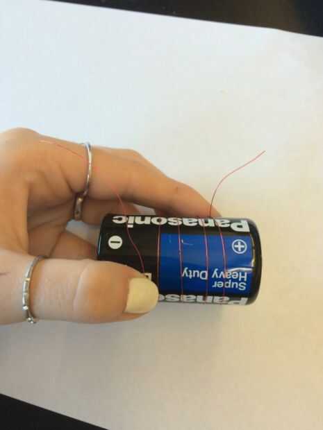 Tomando la longitud de los brazos de alambre vas a iniciar en el extremo derecho o izquierdo de la batería y el cable alrededor de la batería, con aproximadamente dos pulgadas de alambre sobresaliendo a ambos lados de la bobina. Se supone que esta apariencia.