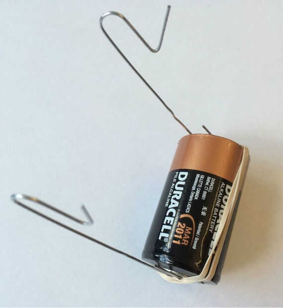 Fuentes:Batería D2 clipsAlambre de cobreelásticoPapel de lijaTijerasPaso 1: instrucciones Reúna los suministrosCorte aproximadamente 25 pulgadas de alambre de cobre con unas tijerasCable de bobina alrededor de la batería dejando aproximadamente 2 pul