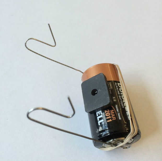 Fuentes:Batería D2 clipsAlambre de cobreelásticoPapel de lijaTijerasPaso 1: instrucciones Reúna los suministrosCorte aproximadamente 25 pulgadas de alambre de cobre con unas tijerasCable de bobina alrededor de la batería dejando aproximadamente 2 pul