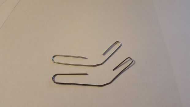 Tomar los clips, luego tomar extremos y luego doblarlas hasta que hace un ángulo de 120'. Luego tome el extremo de la presilla y hasta que hace un bucle para que pegue los extremos de la bobina a través de la curva.
