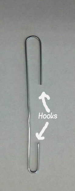 1. tomar una y tire de la parte interior de la pinza hacia fuera. Esto hará que el clip de papel en línea recta con dos "anzuelos" hacia dentro.