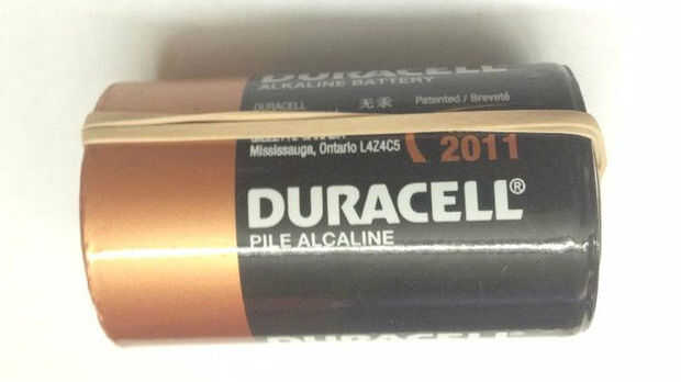 1. en primer lugar tome la banda elástica y Envuélvala alrededor de la batería de D.