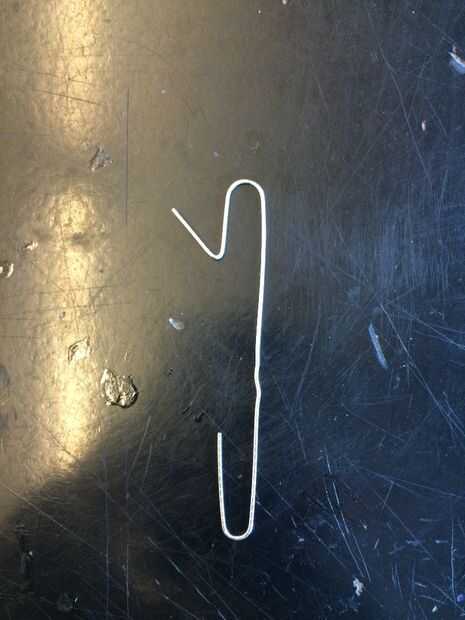 • Paso 9C: utilizar las tenazas o alicates para doblar a uno de sus extremos doblados para crear una "V" o "U" en forma de cuna. Cuando el motor está completamente construido, esta cuna es donde se llevará a cabo el cable. El clip de papel sería casi idéntico a la clip en la imagen a la derecha.