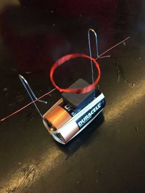 Hoy vamos construir un motor eléctrico simple. El objetivo será ampliar nuestra comprensión del tirón magnético y corriente eléctrico.Materiales:Batería de células de x1 Dx2 Clips de papel grandesx1 alambre magneto de calibre longitud de brazos de 26