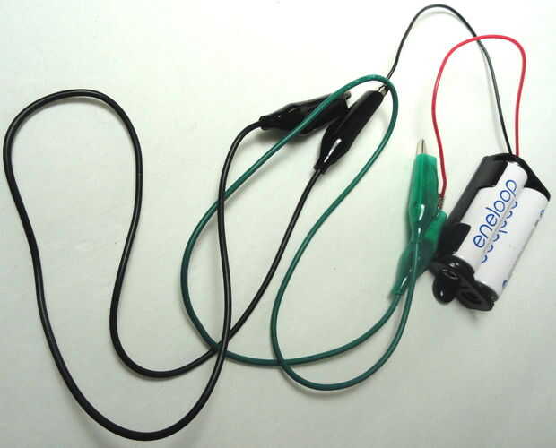 Tome sus baterías y colóquelos en el paquete de baterías. Se utilizaron 2 pilas AA para el motor eléctrico, que trabajó bien. Probamos con 6 baterías AAA y que era un poco peligroso porque comenzaría a recalentarse después de un corto tiempo. Dos baterías de AA gran trabajan aunque. También utilizamos los cables de pinza de cocodrilo porque son fáciles de usar. Siempre puede envolver los cables de la batería en el clip también.