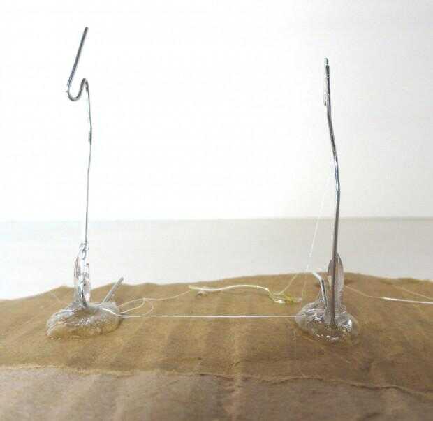 Paso dosAntes de comenzar este paso, puede conectar la pistola de pegamento caliente y lo calienta para que esté listo cuando usted lo necesita. Ahora toma los dos clips de papel metal y dóblelos para parecerse a un soporte. Puede hacerlo con las manos solo, pero si necesita algunos extra aprovechar o quiere mantener las manos suaves entonces utilice alicates para doblar en forma. Se puede ver que necesita habitación en la parte inferior del soporte para fijar las pinzas de cocodrilo.