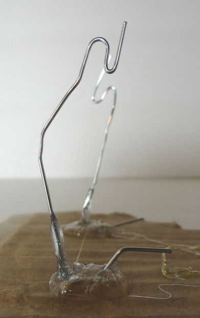 Puede mantener la bobina junto envolviendo uno o ambos extremos alrededor de la bobina como en la imagen. Tomar un alicate y la protección de los extremos del alambre para crear una buena superficie de contacto de la tira. Terminamos nuestro pela hasta la bobina porque la bobina se movió un poco de lado a lado.