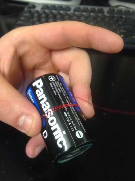 Enrolle el cable alrededor de la batería cómodamente de forma. Dejar aproximadamente 2 pulgadas de alambre en los lados opuestos de la bobina. Se debe envolver firmemente como se muestra en la imagen.