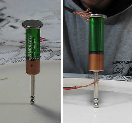 un motor rápido spining hecha con un, tornillo drywall, batería duracell D un trozo de alambre y un imán de la tierra