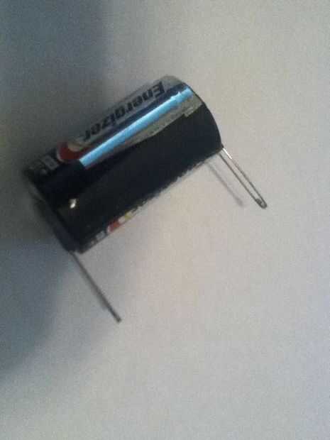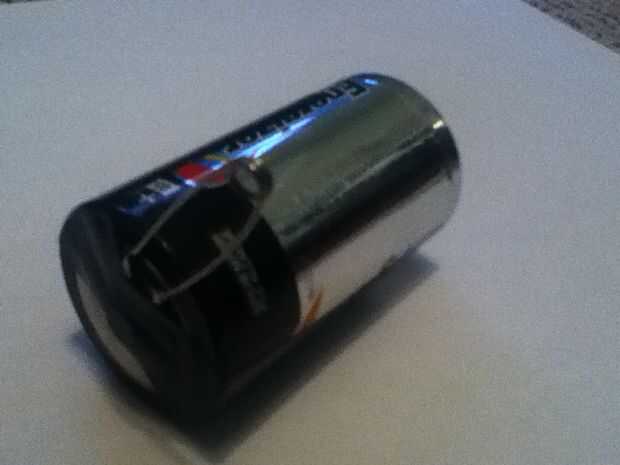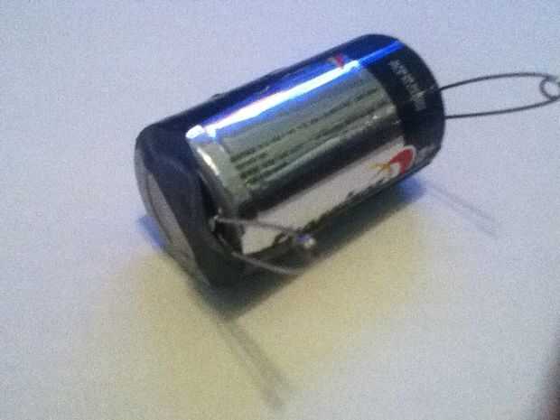 Tomar dos pequeños pasadores de seguridad y colocar a ambos lados de la batería de la célula D con cinta aislante.