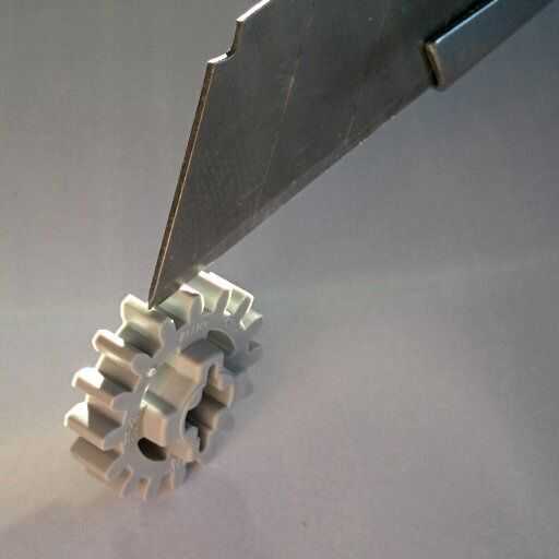 Nota: este Instructable detalles de un equipo de montaje, pero fácilmente puede reemplazar el engranaje por una pieza de Lego de su elección. La media es adaptar el espesor de esta parte para ser compatible con Lego edificios (ver el ejemplo en la última foto).