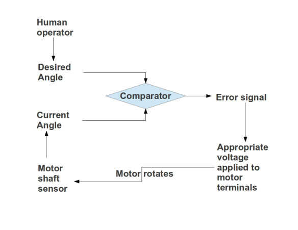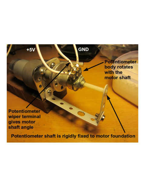 Para implementar el circuito de retroalimentación necesita fijar el eje un potenciómetro giratorio para la Fundación del motor permitiendo cuerpo del potenciómetro rotar libremente con el eje del motor. Este arreglo es conocido como un codificador de eje. Ahora, como el motor shaftrotates, habrá un desplazamiento angular entre el eje del potenciómetro y su cuerpo. Detectando la tensión en el terminal del limpiador del potenciómetro, se puede medir la posición angular del eje del motor. Este ángulo entonces será alimentado en el lazo de retroalimentación permite software de un microcontrolador para el control de la posición angular del eje del motor.