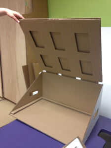 Como queremos que este proyecto sea fácil recrear y barato para hacer hemos decidido construir la caja de cartón. Una vez haya hecho el modelo con medidas es fácil de seguir a las guías y cortar cada pieza. Le sugerimos que a partir de la pieza inferior y el paquete primero.