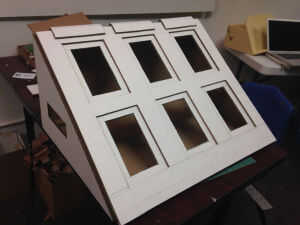 El primer paso a la construcción de la MSMB es decidir en la forma que desea asumir. Para nuestro primer prototipo, el grupo decidió hacer una forma de cuña triangular. Antes de que nuestro grupo trabajó en este proyecto sin embargo, tomó muchas formas diferentes, incluyendo la forma de un cubo real y algo más parecido a un pedestal.