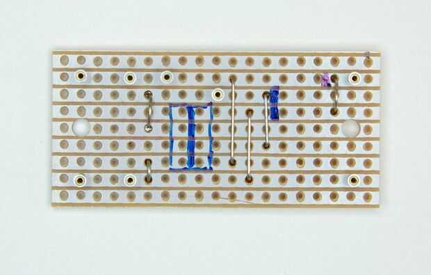 Este circuito se hace en un pequeño trozo de placa perforada. Algunos de los detalles de construcción son visibles en las fotos que lo acompaña.