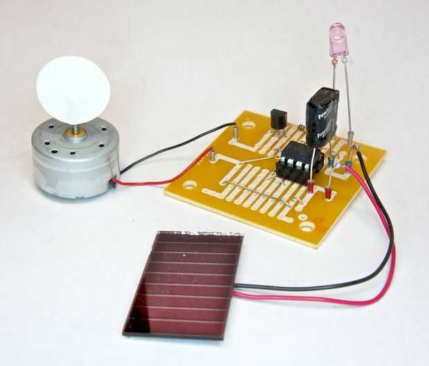 un Motor Solar es un circuito que toma y almacena energía eléctrica de las células solares, y cuando se ha acumulado una cantidad predeterminada, cambia para conducir un motor u otro actuador.  Un motor solar no es un 'motor' en sí mismo, sino que es