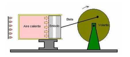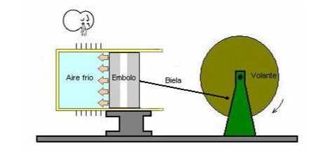 3. Si se repite el proceso del estado 1, pero ahora unir el pistón al cigüeñal y a su vez una rueda, el aumento de la presión fuerza el movimiento del pistón haciendo que el cigüeñal y esto en la rueda, con esto logra el cambio volumétrico se transforma en movimiento.